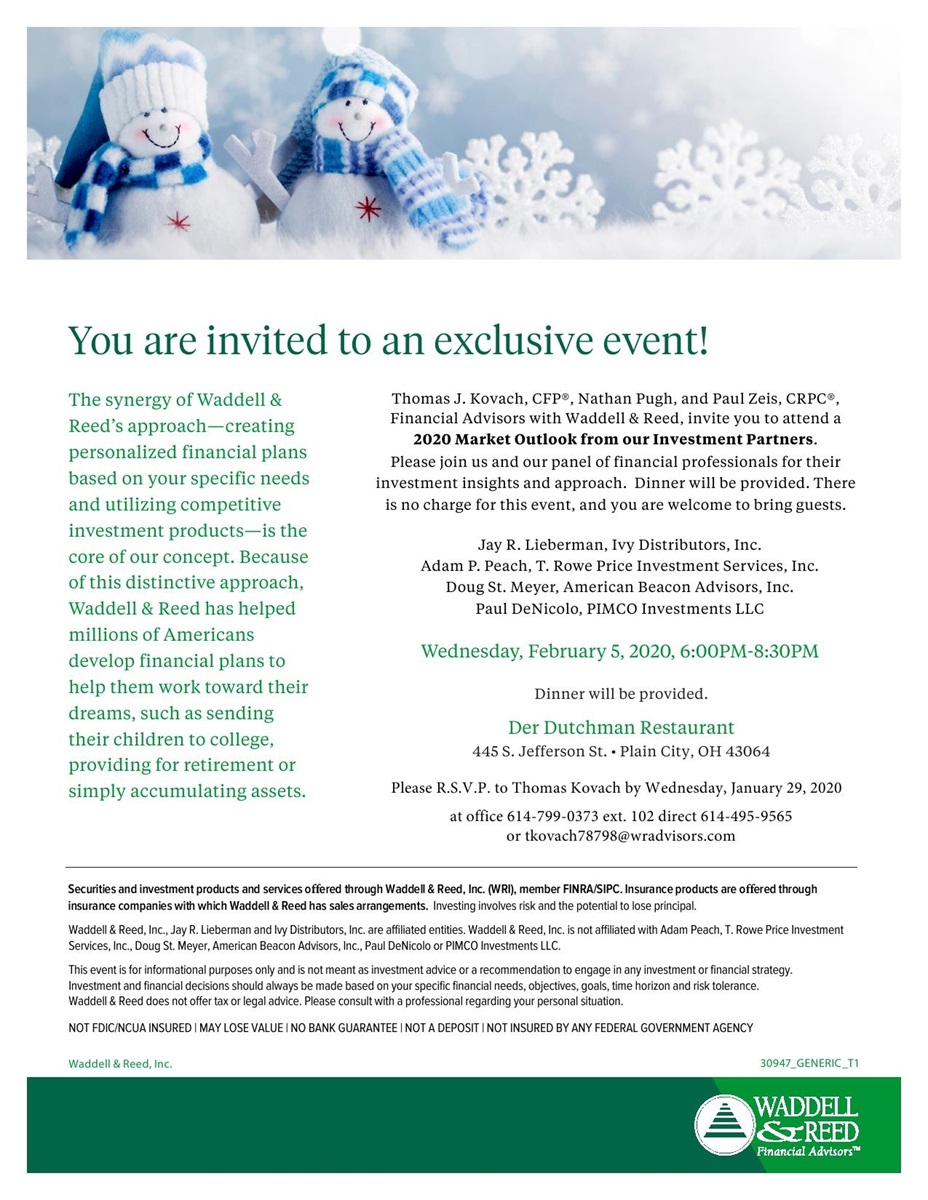 Please join us and our panel of financial professionals for their investment insights and approach. Dinner will be provided. There is no charge for this event, and you are welcome to bring guests.